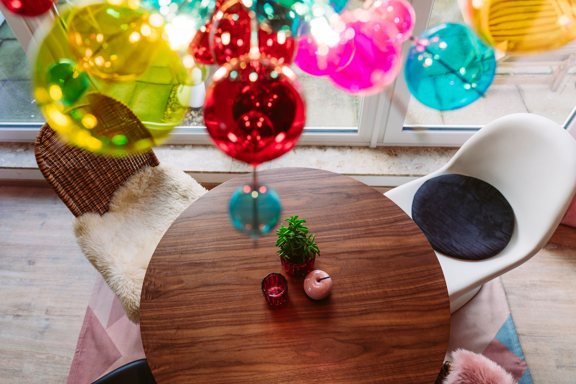Im Wohnzimmer steht das samtblaue Sofa, auf dem locker 2 Leute zum Schlafen Platz finden. Sag einfach Bescheid, dann richten wir hier einen zusätzlichen Schlafplatz für Deine Mitbewohner her. Außerdem hat das Wohnzimmer einen Essplatz mit 4 Sitzmöglichkeiten und einen kleinen Sekretär fürs Homeoffice. Ein Ferneher (32" Bildschirmdiagonale), versteht sich von selbst.