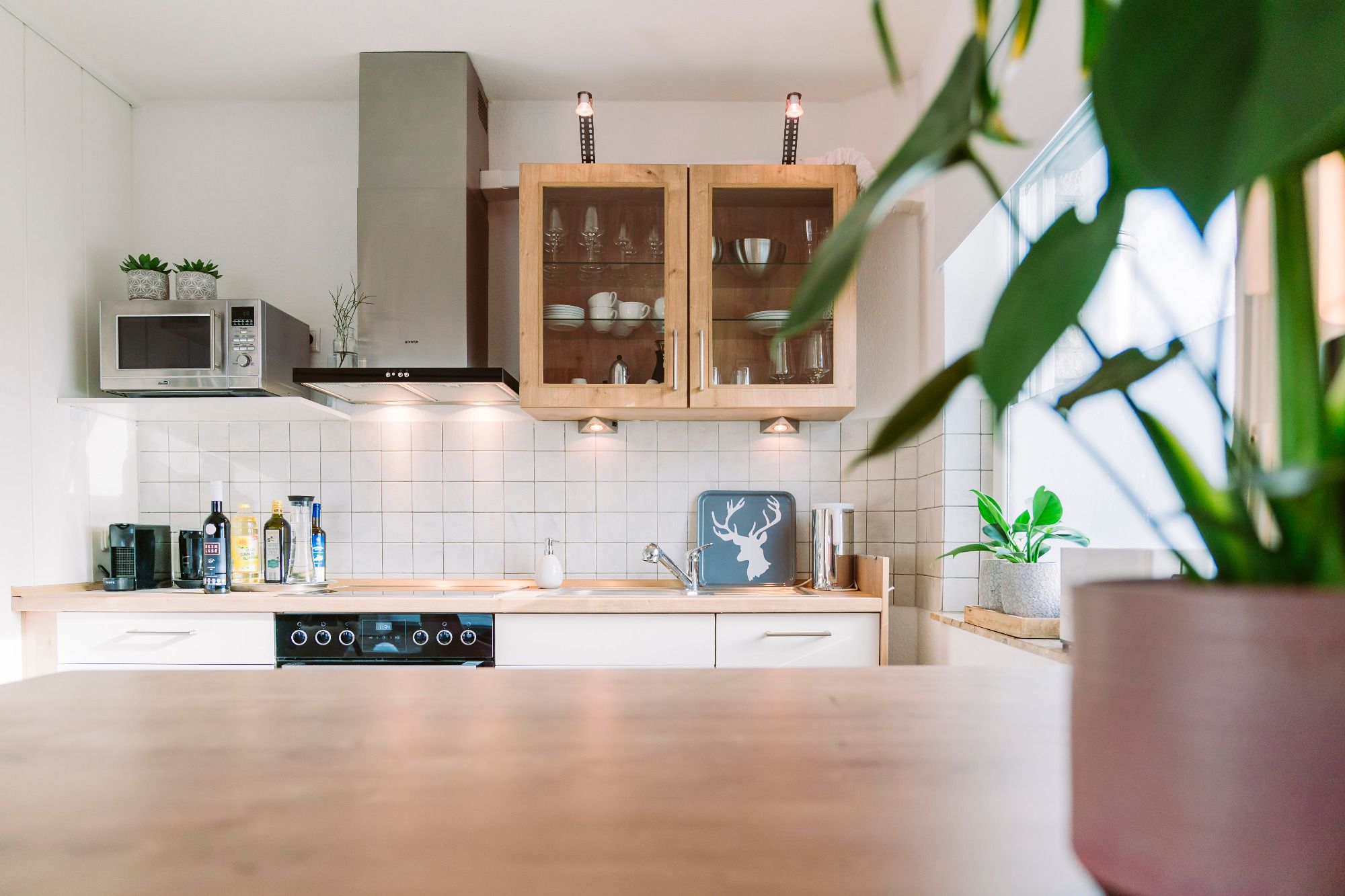 Die Küche ist voll ausgestattet mit Kühlschrank, Backofen, Mikrowelle, Geschirrspülmaschine, Nespresso-Kaffeemaschine, Milchaufschäumer, Wasserkocher, Toaster. Auch eine Tiefkühltruhe für längere Aufenthalte ist vorhanden. Die Grundausstattung mit Kaffee, Tee, Zucker, Mehl, Öl, Pfeffer und Salz steht Dir kostenlos zur Verfügung.